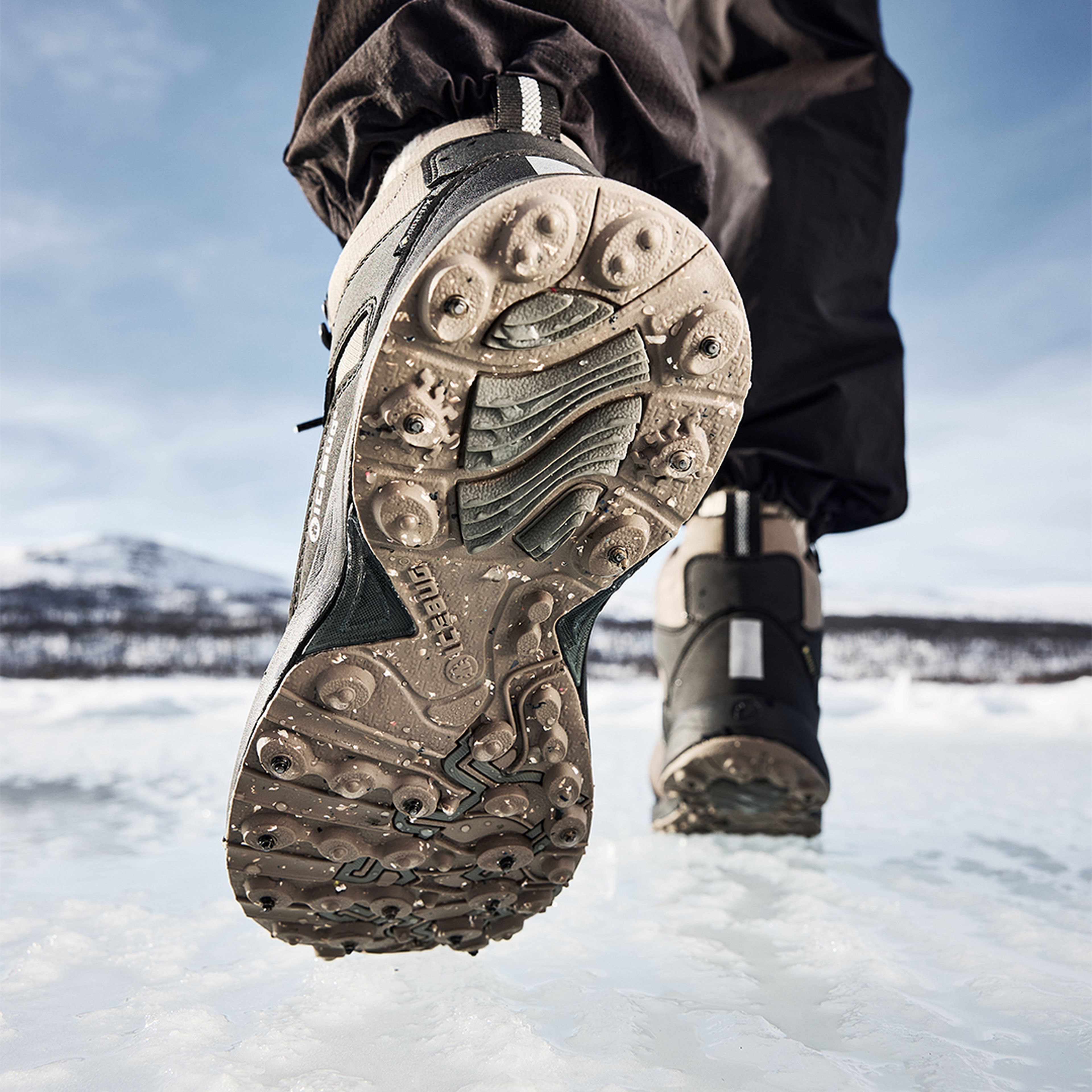 The BUGrip outsole features dynamic carbide steel studs that adapt to the surface and provide reliable grip on snow and ice – the obvious choice for the iciest conditions.