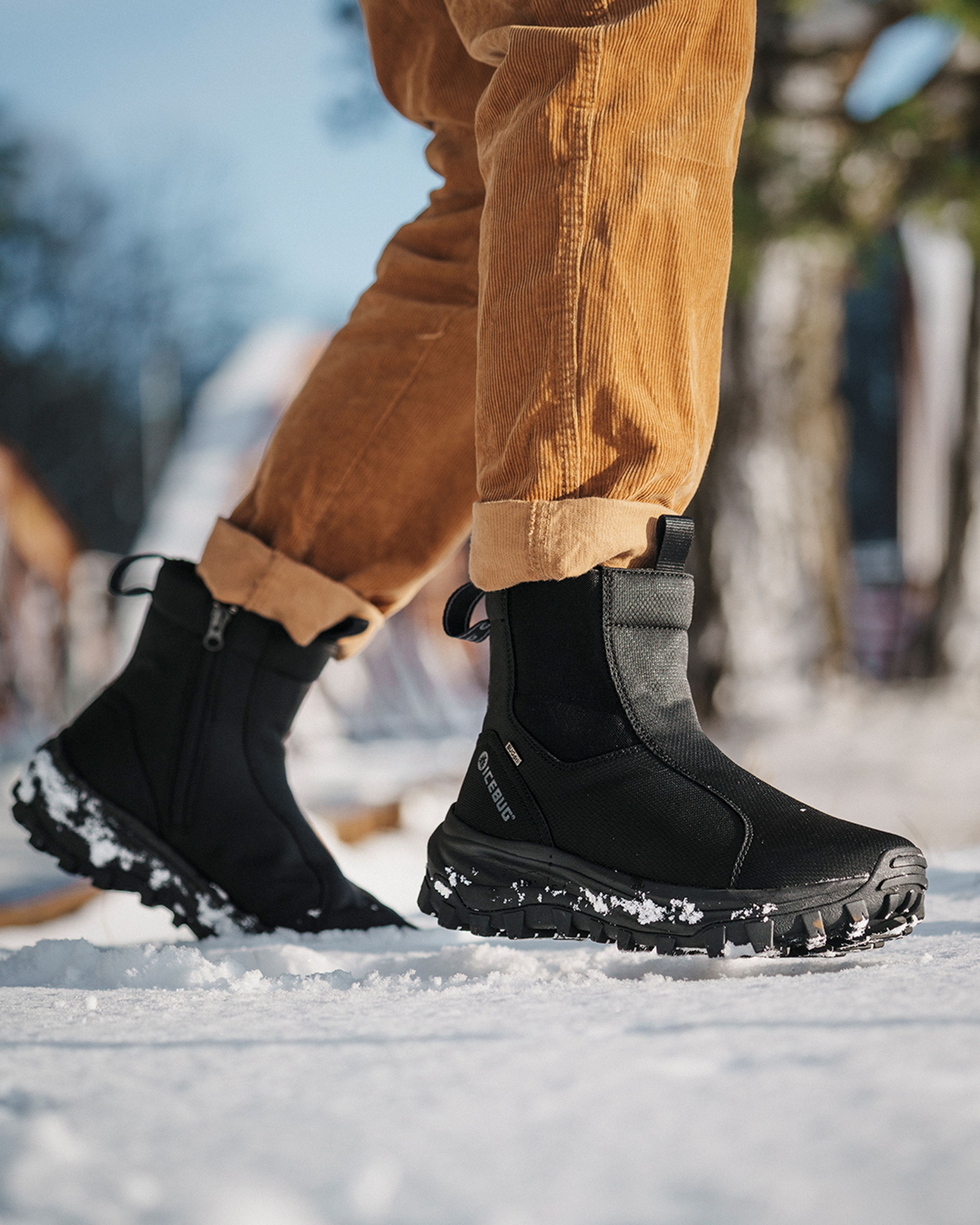 Icebug Nordic Traction is developed from over 20 years of experience working with traction. The soles are specially adapted for Nordic winters, made from a rubber compound that maintains grip on snowy and mixed winter surfaces. What stands out with Nordic Traction is that the soles stay soft and keep their grip – even at very low temperatures.
